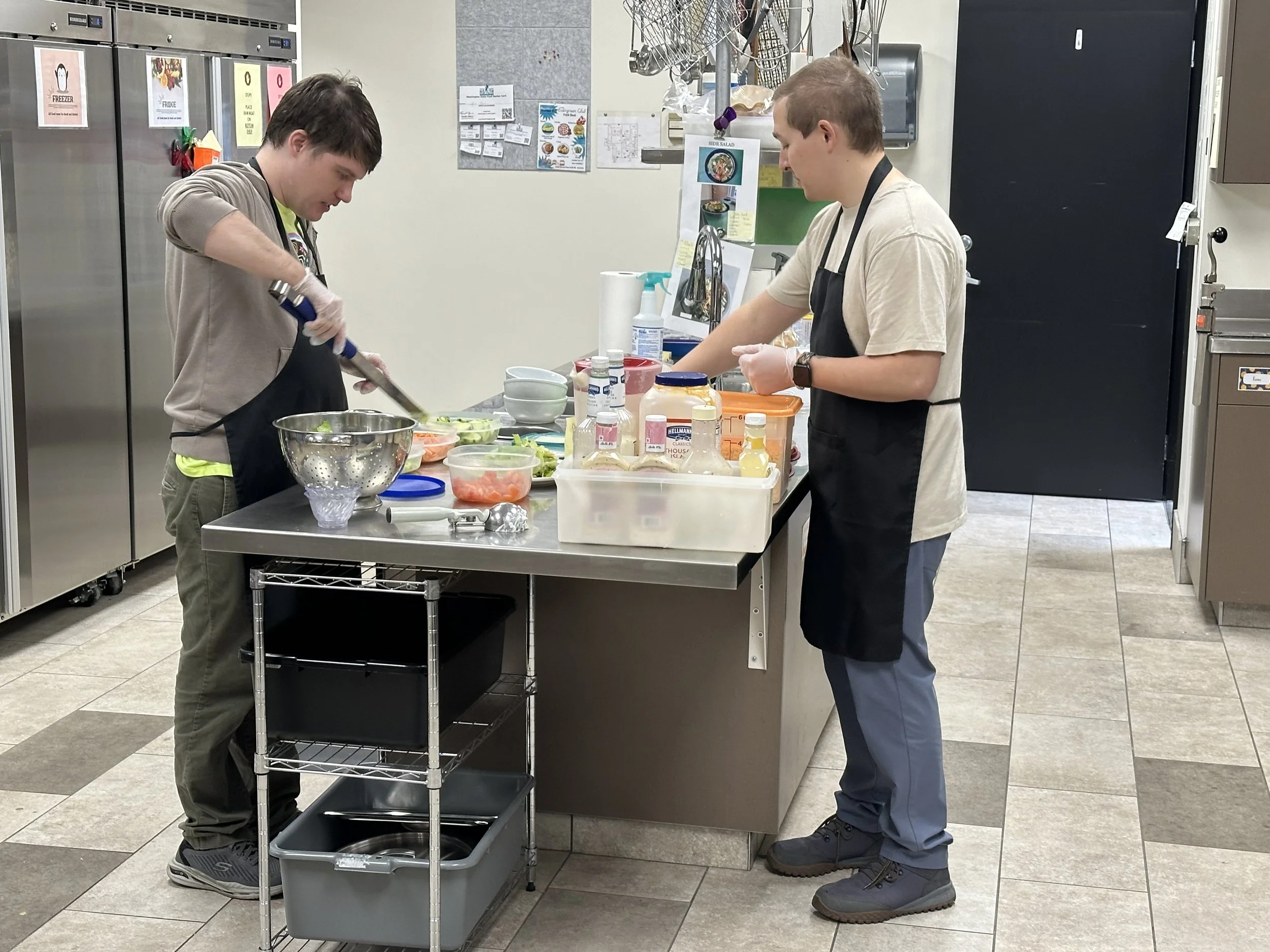 Evergreen Café: Members and staff perform all the duties required in most food-service operations. Members plan, shop, cook and serve lunch daily to members, staff and guests. The Café works with the club’s Garden Committee to manage the greenhouse, raised vegetable beds, and flower gardens on the property.